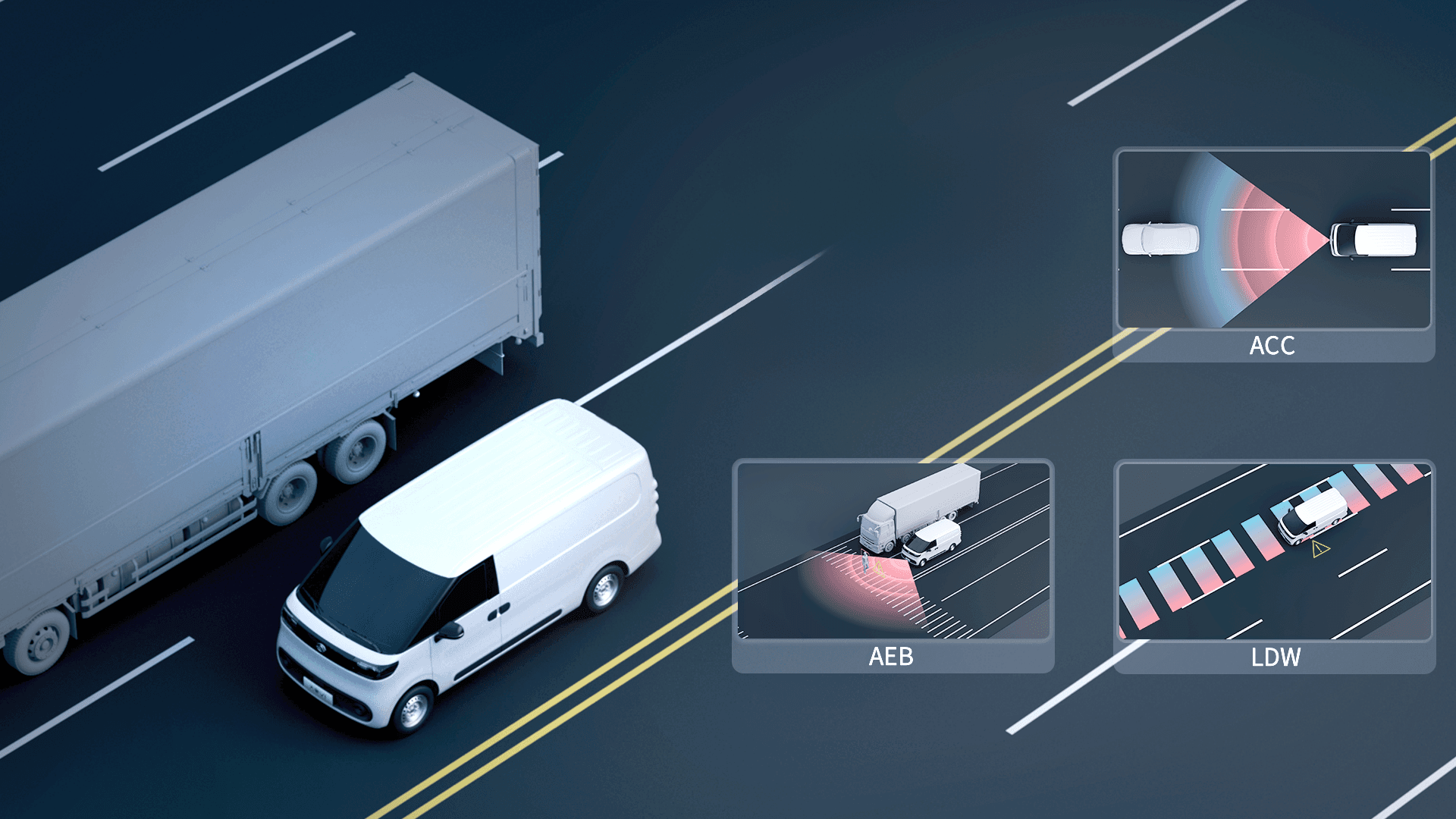 Sicherheit steht bei MAXUS an erster Stelle, daher ist der eDELIVER 5 mit fortschrittlichen Sicherheitssystemen ausgestattet, die den aktuellen GSR2-Vorschriften entsprechen. Die Adaptive Geschwindigkeitsregelanlage (ACC) und der Spurverlassenswarner (LDW) mit Spurhalteassistent (LKA) unterstützen den Fahrer bei jeder Fahrt. Auch eine Geschwindigkeitszeichenerkennung, ein automatischer Notbremsassistent (AEB) mit Frontkollisionswarner (FCW) oder ein Fernlichtassistent (IHC) sind serienmäßig an Bord.