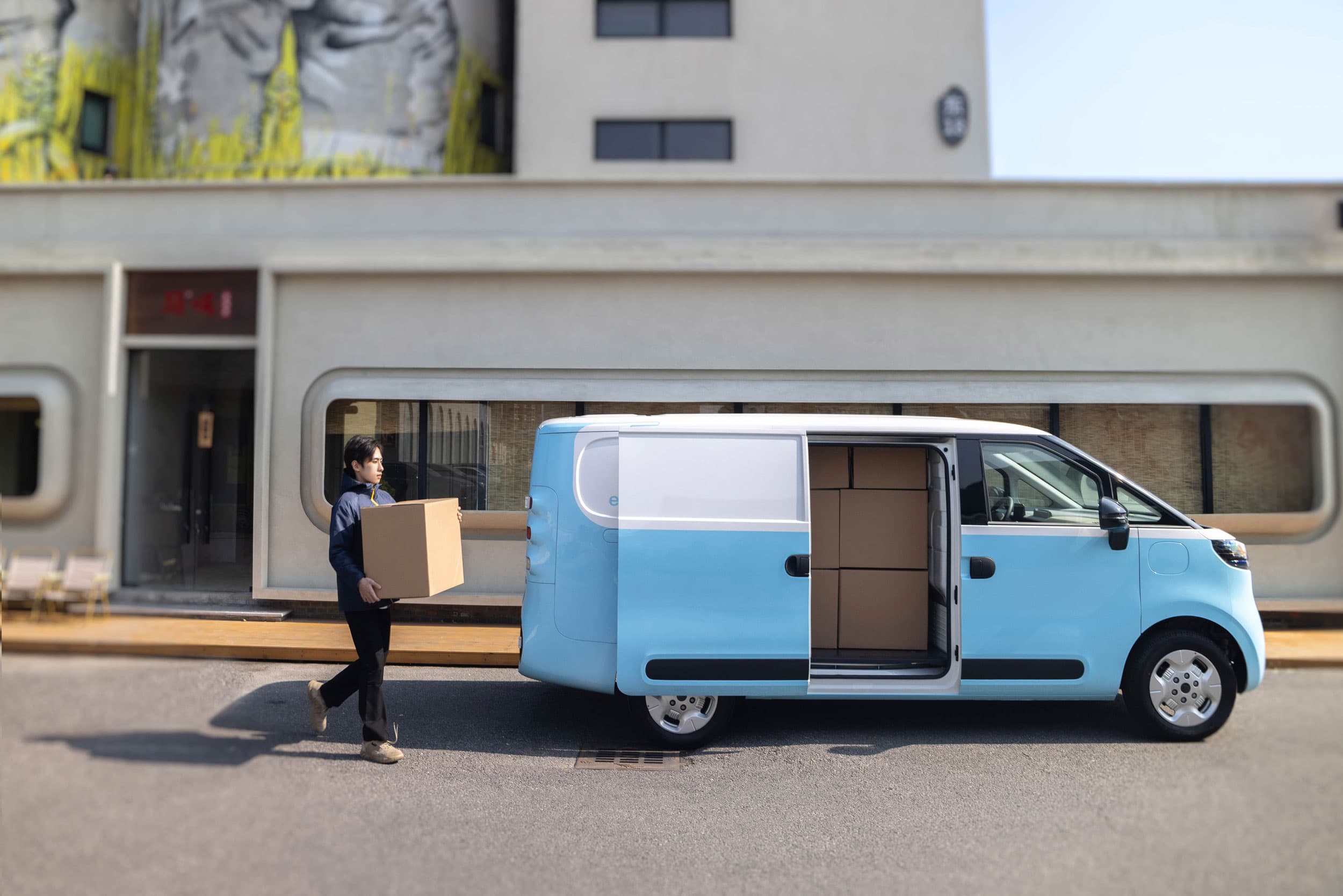 Die ausgefeilten Designdetails und die auf den Charakter des Fahrzeugs abgestimmte Farbpalette verschaffen dem eDELIVER 5 einen frischen Auftritt. Die serienmäßigen Schiebetüren auf beiden Seiten und die asymmetrischen Flügeltüren am Heck bieten außerdem einen leichten Zugang zum großen Laderaum, was das Beladen noch einfacher macht.